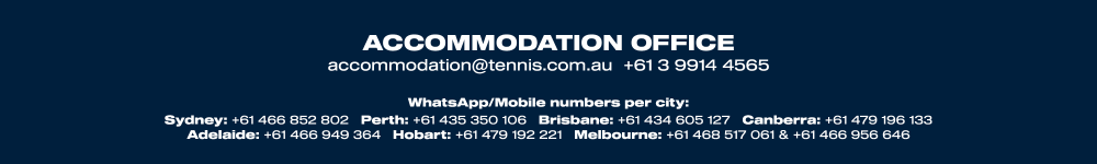 Using this booking portal, you can make an accommodation booking request for each Summer of Tennis & Australian Open tournament you are attending.